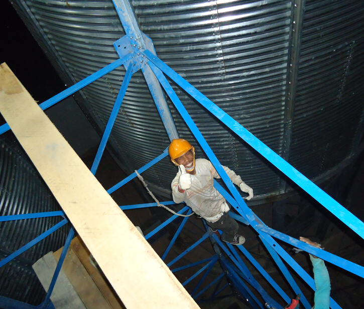 1、通風系統,倉頂安裝自然通風窗、引風機,錐底安裝鼓風機,引流空氣到倉內循環,保護糧食不受潮,極大的保證了倉內糧食的質量。