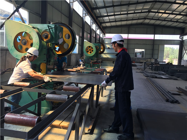 裝配式鋼板倉的倉體主要由壓型鋼板和z 型鋼立筋組成, 小倉、矮倉可以不設立筋或只設單筋( 每塊墻板對應一根立筋) , 大倉、高倉必須設置雙筋且立筋壁厚要逐次加厚。壓型鋼板從上到下要逐次加厚, 壓型鋼板以卷板為原料采用輥壓法在工廠預制完成, 逐道輥壓一次成型, 波紋形成后再經過沖孔工序、彎弧工序和鍍鋅工序等完成預制墻板工序, 包裝后運往倉庫或現場進行安裝。