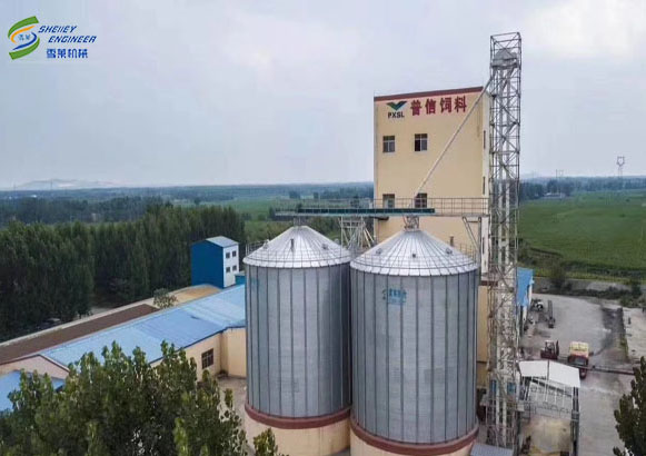 雪萊鋼板倉廠家回訪東平飼料廠水泥錐底鋼板倉