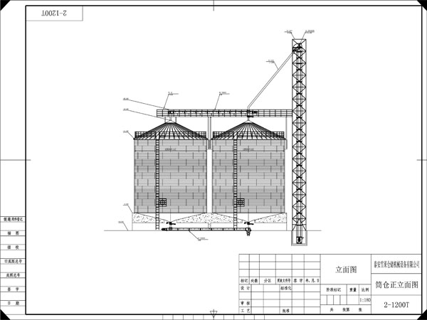 此項目為山東泰安地區飼料廠項目,始建于2018年,項目的工作流程為糧食通過大車拉來,糧食的卸車方式為兩側卸車,遂糧食經過卸糧坑底部的刮板機輸送到E1提升機,然后流入雙層圓筒初清篩去除大小雜質,后流入E2提升機,通過鋼板倉頂的刮板機配合電動閘門的開合分別控制進入2臺水泥錐底鋼板倉。