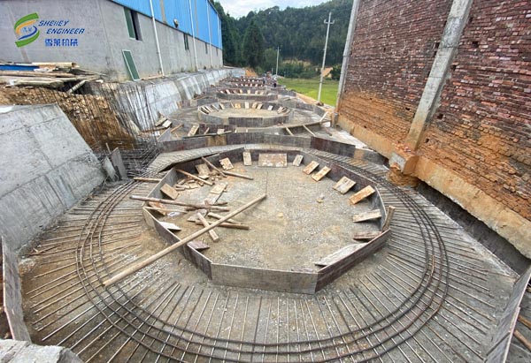此項(xiàng)目為福建地區(qū)養(yǎng)豬場(chǎng)玉米和豆粕倉(cāng)儲(chǔ)項(xiàng)目。萬(wàn)丈高樓從地起,地基的好壞不僅關(guān)系到房屋能否長(zhǎng)期居住,以使房屋不至變形、開(kāi)裂、沉降等,好的地基還能使建好后的房屋更有儀式感和立體感。糧倉(cāng)的建設(shè)亦是如此。鋼板倉(cāng)廠家雪萊公司的地基圖紙都是經(jīng)過(guò)專業(yè)的設(shè)計(jì)院設(shè)計(jì)并出具到客戶手中的,其中需要客戶提供地勘報(bào)告,然后設(shè)計(jì)院根據(jù)地勘報(bào)告因地制宜的設(shè)計(jì)出立筒倉(cāng)地基圖紙,從而全方位的保證鋼板倉(cāng)的安全建設(shè)和使用。