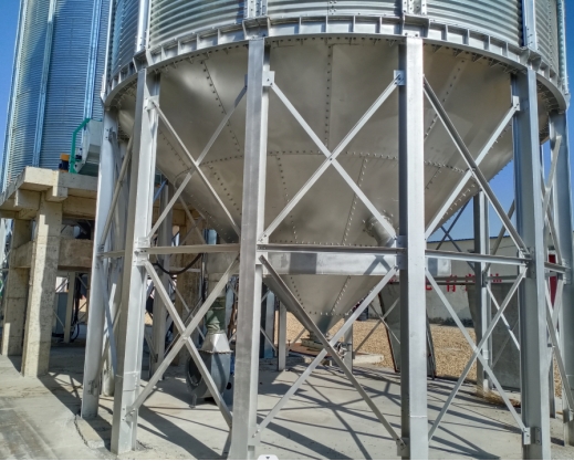 300噸錐底鋼板倉(cāng)主要用于存儲(chǔ)玉米、小麥、稻谷等糧食及其他顆粒狀物料。具有機(jī)械化程度高、使用壽命長(zhǎng)等優(yōu)點(diǎn)。