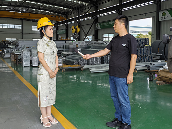 2024年3月11日省海關(guān)和貿(mào)促會(huì)領(lǐng)導(dǎo)來到山東雪萊糧倉智能科技有限公司進(jìn)行參觀考察,泰安電視臺(tái)也進(jìn)行了跟蹤報(bào)道,在整個(gè)參觀環(huán)節(jié)中公司靳總?cè)膛阃?duì)領(lǐng)導(dǎo)提出的問題做了詳細(xì)解答。